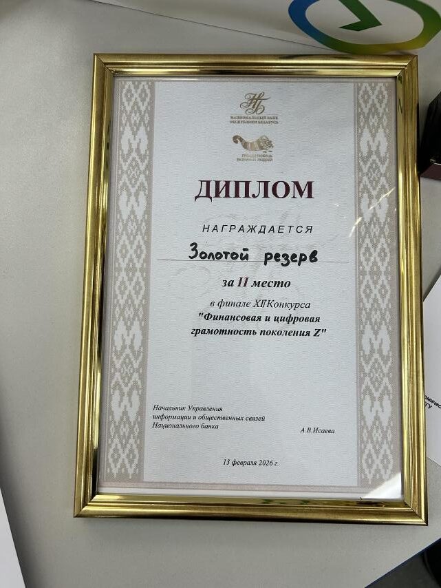 На экономическом факультете БГУ 13 февраля 2026 г. состоялся финал XII Конкурса «Финансовая и цифровая грамотность поколения Z»! Поздравляем Фяксель Е. М. и её команду «Золотой резерв»(Попок Елизавету, Линкевича Игната, Маслова Богдана, Корастылева Михаила) с блестящей победой в финале 12 конкурса » Финансовая и цифровая грамотность поколения Z «! Благодарим за высокий уровень подготовки и инициативу в личностном развитии, повышении престижа учреждения!